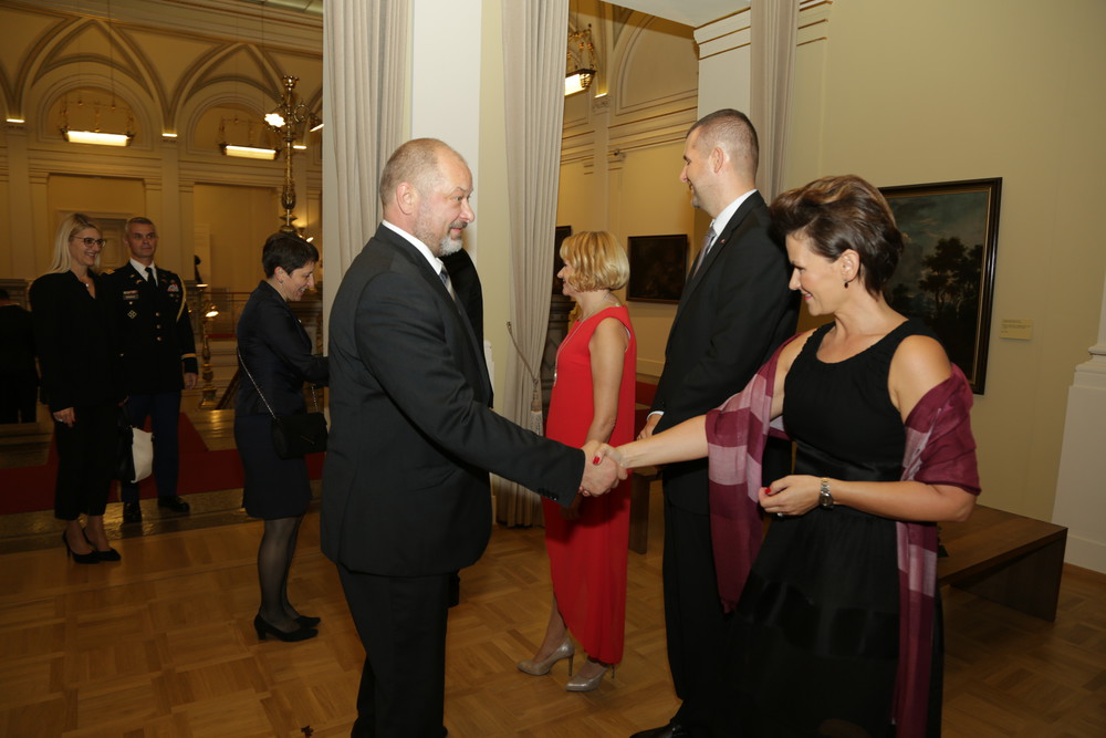 Nj. eksc. gospod Paweł Czerwiński s soprogo na sprejemu 100. neodvisnosti Republike Poljske v Narodni galeriji, Ljubljana