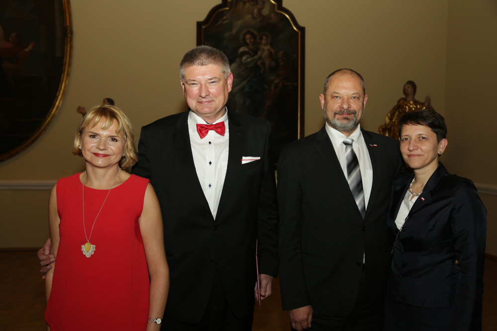 Alojz Kovšca, predsednik DS RS in Nj. eksc. gospod Paweł Czerwiński, veleposlanik Republike Poljske s soprogama na sprejemu ob stoletnici neodvisnosti Republike Poljske v Narodni galeriji, Ljubljana