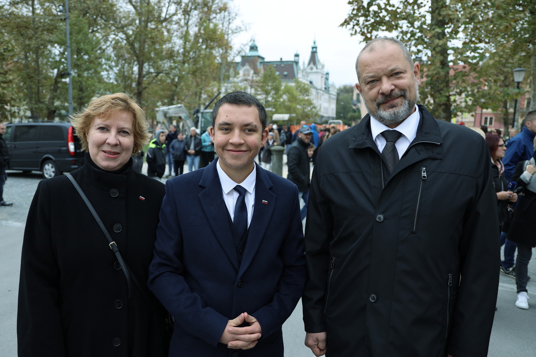 Iz leve proti desni: Zofija Hafner, vodja kabineta predsednika DS in Alojz Kovšca, predsednik DS RS s sinom