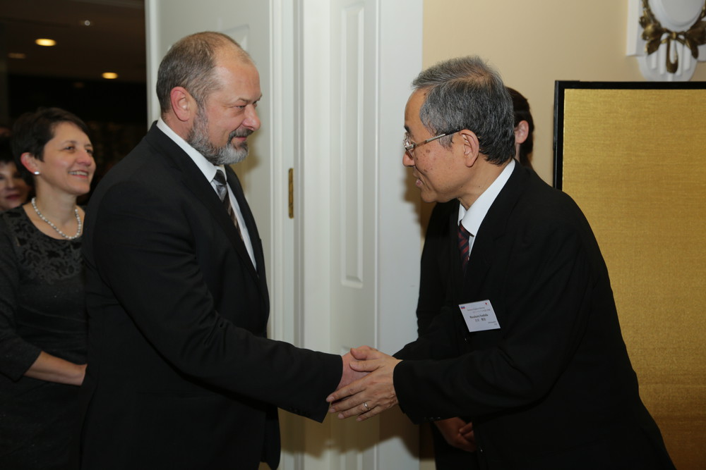 Alojz Kovšca, predsednik Državnega sveta RS in veleposlanik Japonske v RS, Nj. eksc., gospod Masaharu Yoshida na sprejemu v hotelu Union v počastitev rojstnega dne kralja Japonske