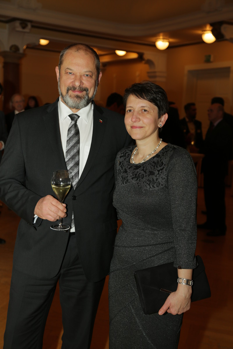 Alojz Kovšca, predsednik Državnega sveta RS s soprogo Stanko Kajfež Bogataj na sprejemu v hotelu Union v počastitev rojstnega dne kralja Japonske