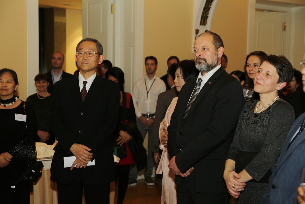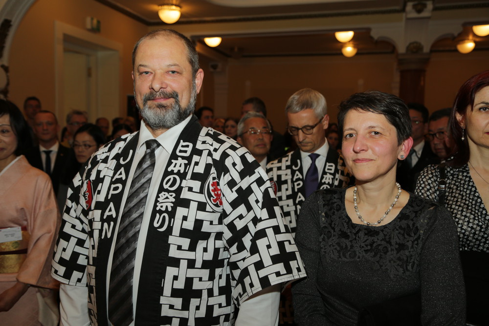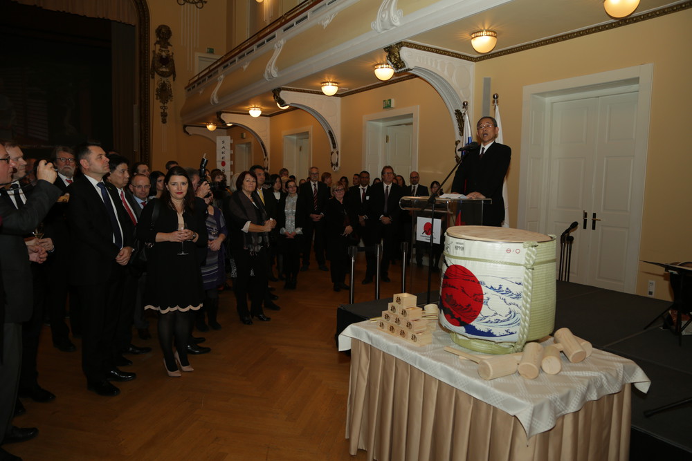 Nj. eksc., gospod Masaharu Yoshida, veleposlanik Japonske v Republiki Sloveniji in Alojz Kovšca, predsednik Državnega sveta RS na sprejemu v hotelu Union v počastitev rojstnega dne kralja Japonske