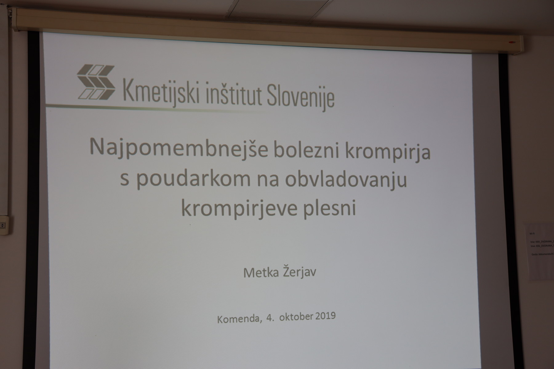 Strokovno predavanje na 24. jesenskem kmetijsko-obrtnem sejmu Komenda 2019. Pripravili so ga v organizaciji Konjeniškega kluba Komenda, Kmetijsko-gozdarske zbornice Slovenije in Kmetijskega zavoda Ljubljana v prostorih KK Komenda v Komendi. Nove tehnološke rešitve pri pridelavi krompirja in bolezni kromirja so predstavili predavatelji: dr. Peter Dolničar, mag. Metka Žerjav in Primož Žigon s Kmetijskega inštituta Slovenije.