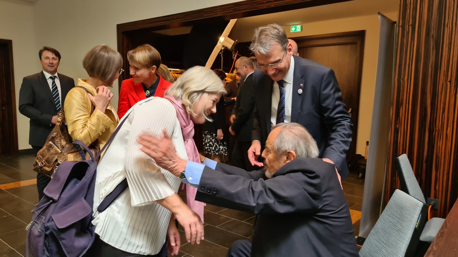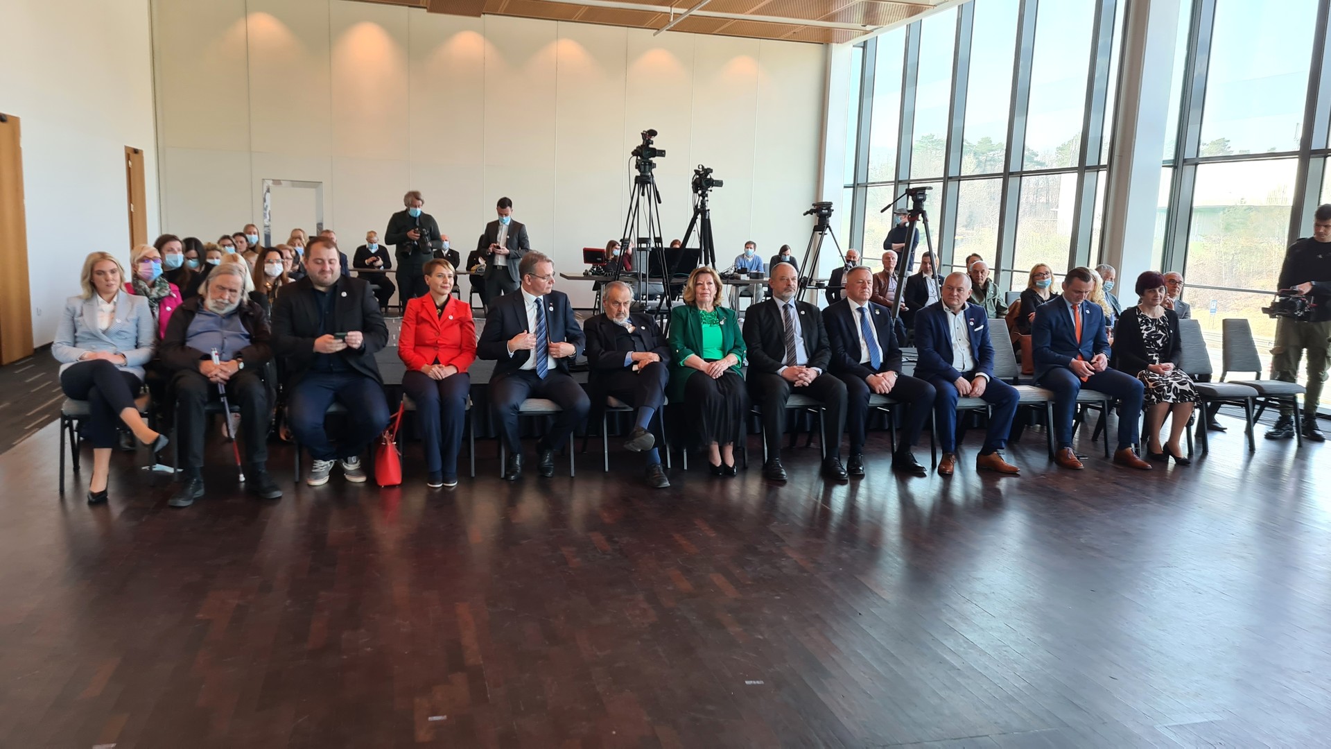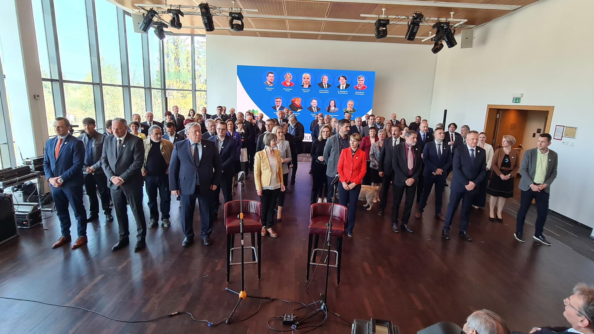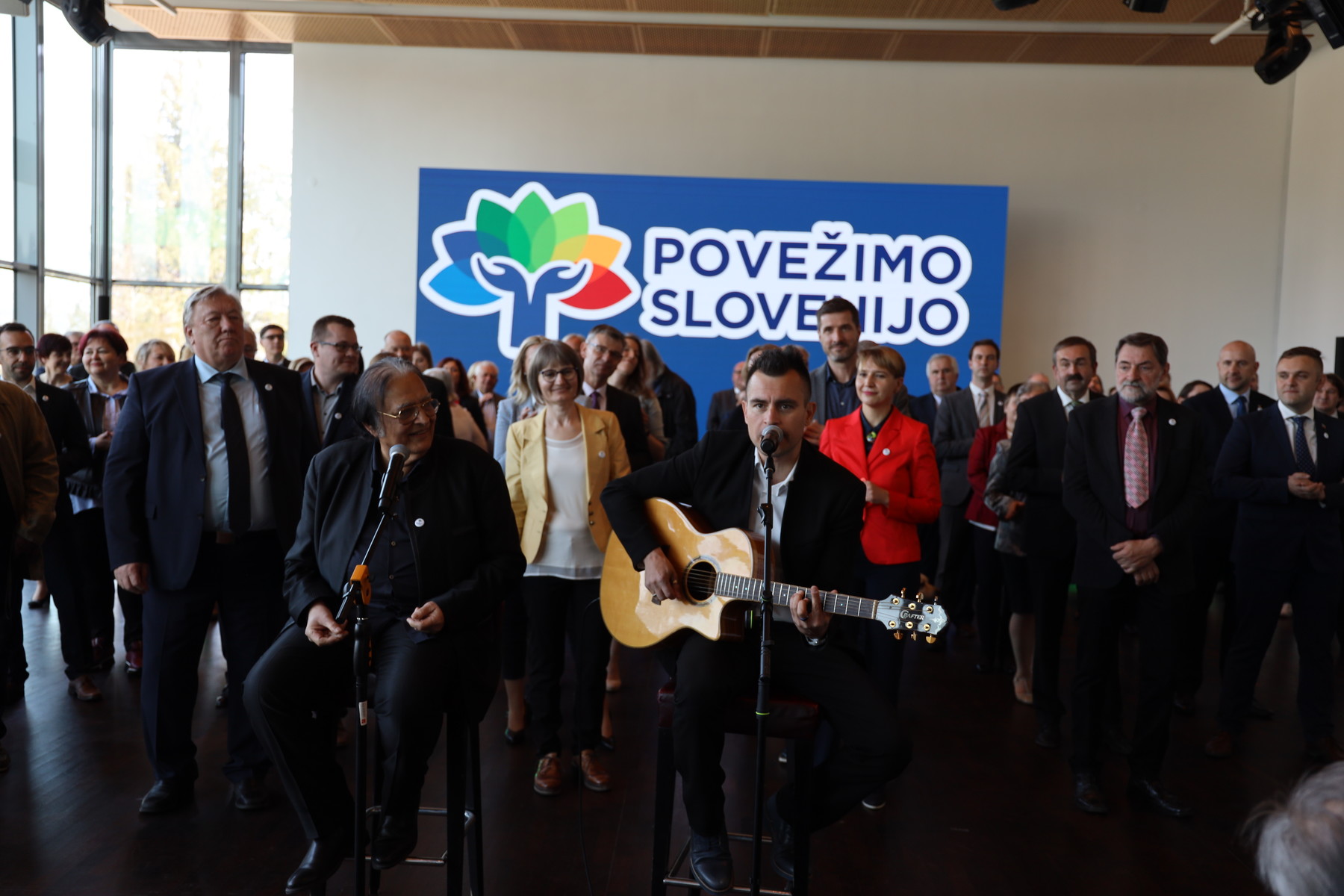 S svojo "himno" Gibanja Povežimo Slovenijo, sta Oto Pestner in Omar Naber poskrbela za vrhunec razpoloženja na predstavitvi kandidatov Gibanja Povežimo Slovenijo (PoS), 26. marca 2022, v Ljubljani