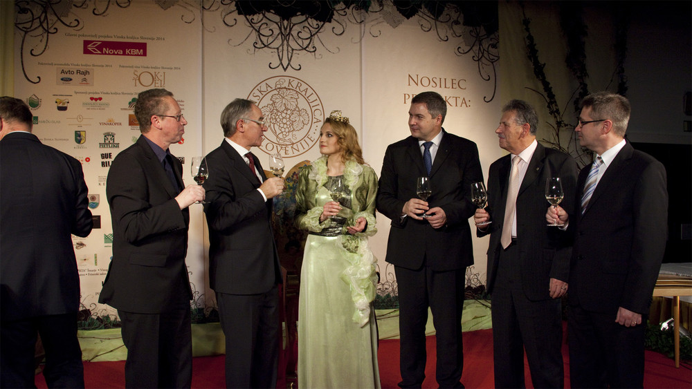 Kraljičino vino bo tokrat avtohtona vipavska sorta Pinela, letnik 2012 in 2013. Na kronanju ga je novi vinski kraljici Slovenije izročil njen oče Damjan, saj vino prihaja iz domačih vinogradov, ki obsegajo 2 hektarja. Kulturni zven prireditvi, katero je moderiral Stane Kocutar, sta pridala prvak opere in baleta SNG Ljubljana, koncertni baritonist Marko Kobal, ob spremljavi priznanega citrarja Tomaža Plahutnika, kraljevski vtis pa so pričarale fanfare Qua Tromba.